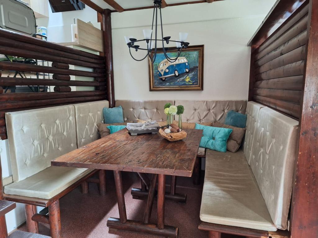 Het vakantiehuis heeft een grote leefruimte met aparte eethoek en woonkamer. De woonkamer heeft een televisie met dvd speler en een heerlijke houtkachel.